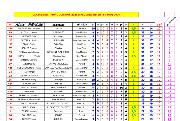 Le Challenge Dominos 2026 à rassemblé 200 participants le mercredi 4 mars 2026 à Plouneventer.