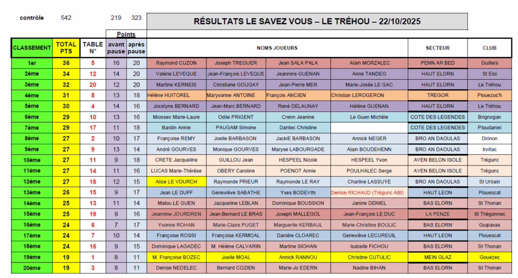 Succès pour le jeu « Le Savez-Vous ?» organisé par le club de loisirs de La Mignonne du Tréhou.